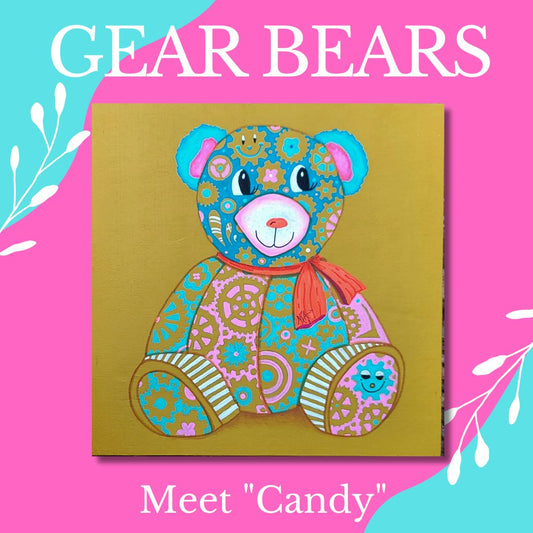 "Candy" Original Geartopia GEAR BEAR Doodle Gears Painting