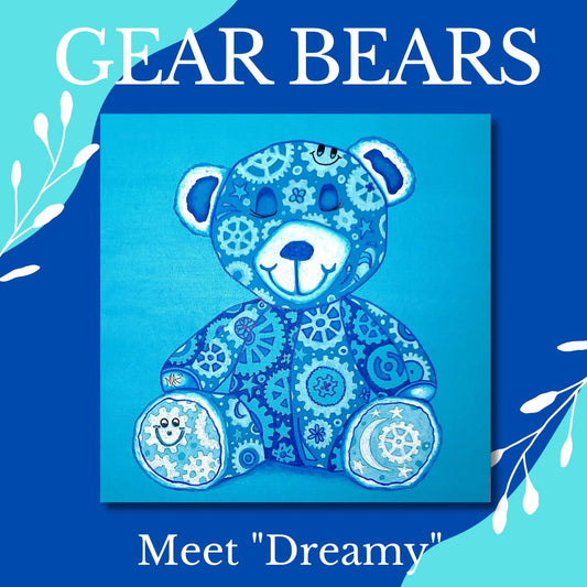"Dreamy" Original Geartopia GEAR BEAR Doodle Gears Painting