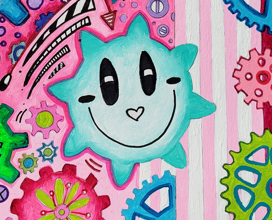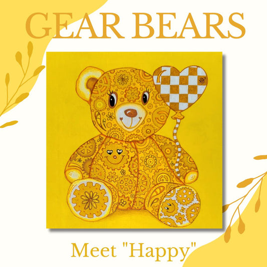 "Happy" Original Geartopia GEAR BEAR Doodle Gears Painting