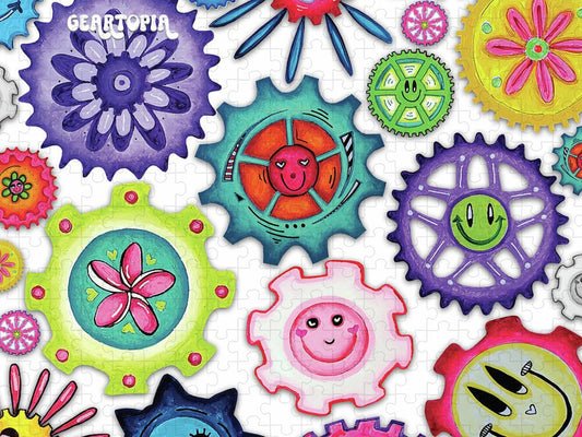 Geartopia Gears Pattern Smiley Face Flower Gears Pattern for GearHeads Watches, Cycling, Steampunk - Puzzle