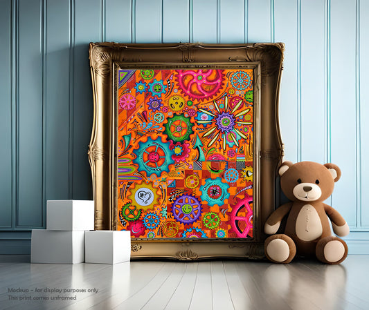 PURE JOY Geartopia Art Whimsical Gears Fine Art for Kids Childrens Room or Nursery by MeganAroon - Puzzle