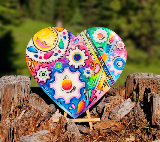 Original Acrylic Wooden Heart Doodle Gears PoP Art Painting #10