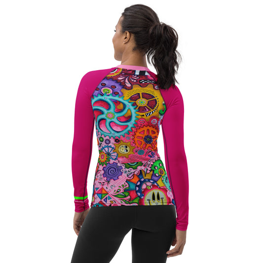 Cyclist Women's Long Sleeved Bike Jersey - Smiley Face Gear Pattern 1