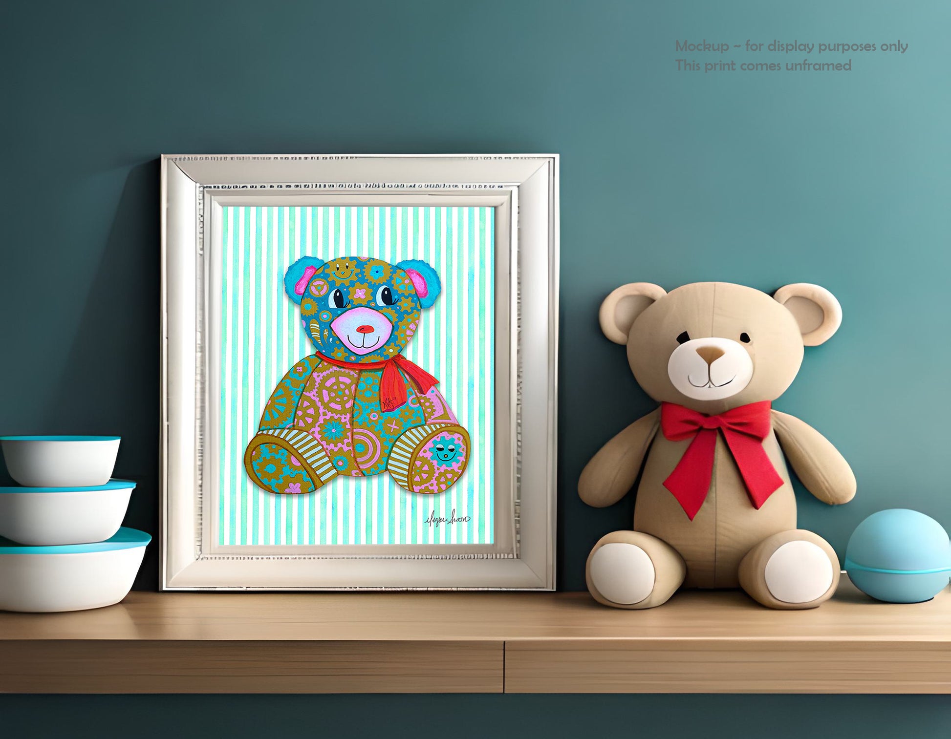 Bring home the magic of Geartopia with this exclusive Limited Edition Candy the GEAR BEAR print—a radiant burst of color and imagination that turns any nursery or child’s room into a wonderland of creativity and joy.